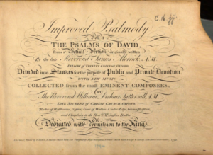 Richard Worgan was in Yorkshire in 1794. In June of that year four of his settings of parts of psalms were published in Improved Psalmody, a collection of such pieces by a number of composers edited by William Tattersall. Among the other composers was Richard’s 18-year-old half-brother Thomas Danvers Worgan and his brother-in-law William Parsons, the husband of his sister Charlotte. Parsons had been appointed Master of the Musicians in Ordinary to the king, George III, in 1786. Richard and Thomas Worgan were among the subscribers to the publication, both described as of Yorkshire, as was a Miss Worgan of Somerset Street in London, Richard’s younger sister Maria, who lived with the Parsons.